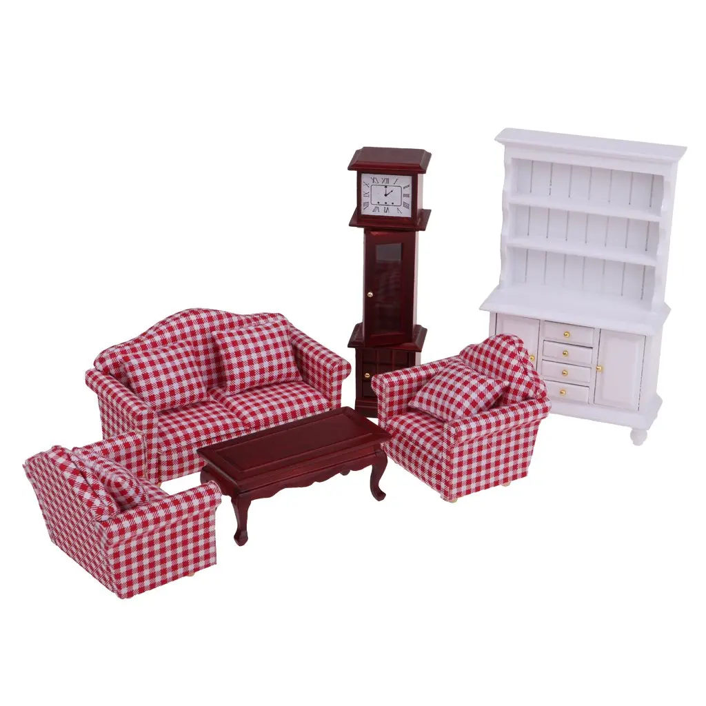 أرغب في شراءمعلومات اضافية 1:12 مقياس دمية خزينة ملابس خشبية أريكة الجدول خزانة جرس مصغرة بيت الدمية الاكسسوارات اللعب هدية عيد ميلاد للأطفال