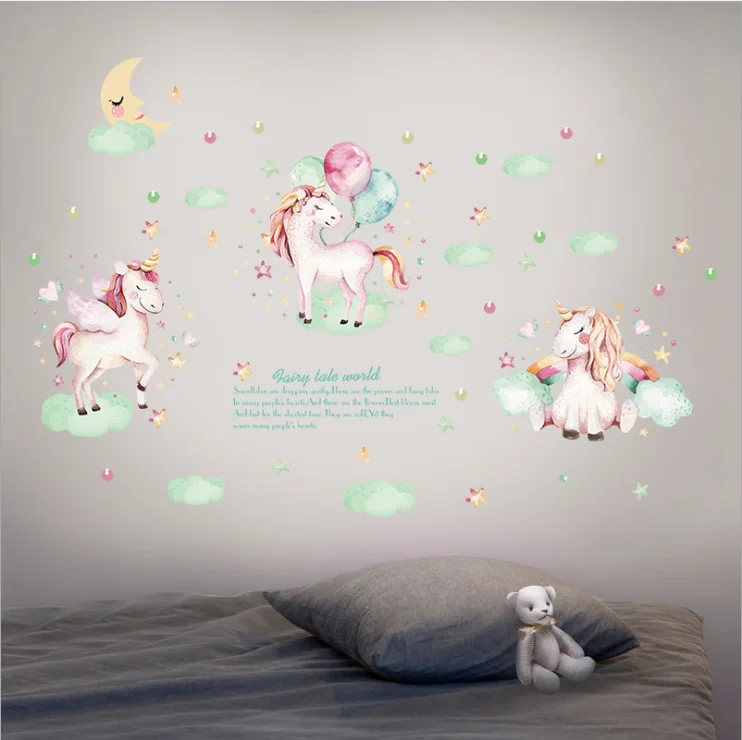 البحث عن معلوماتمعلومات اضافية الكرتون الحيوانات رواية يونيكورن ملصقات جدار DIY الأطفال جدارية الشارات للأطفال غرف الطفل خزانة غرفة النوم باب الديكور