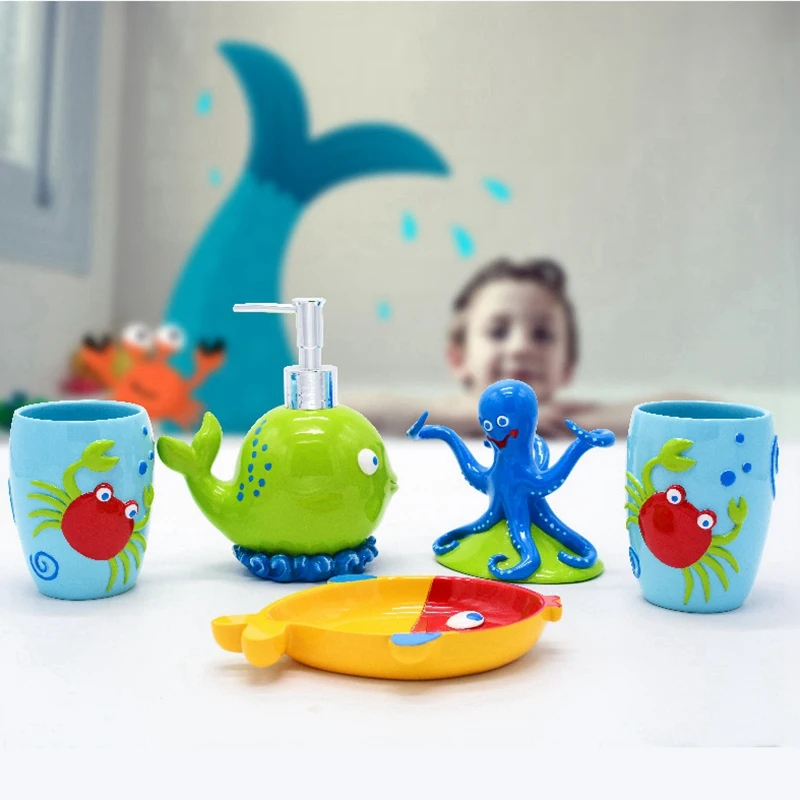 البحث عن معلوماتمعلومات اضافية Kids'Bathroom اكسسوارات مجموعة 5 قطعة فرشاة الأسنان حامل حمام غرفة ديكور جميل لطيف السلطعون الأخطبوط الحوت اللون الراتنج الأطفال هدية