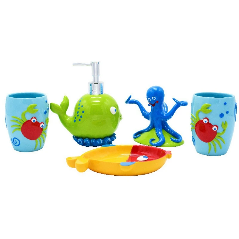 معرض ل Kids'Bathroom اكسسوارات مجموعة 5 قطعة فرشاة الأسنان حامل حمام غرفة ديكور جميل لطيف السلطعون الأخطبوط الحوت اللون الراتنج الأطفال هدية