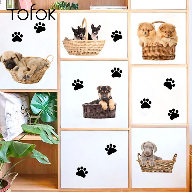 البحث عن معلوماتمعلومات اضافية Tofok الكرتون الكلاب جميل مخلب طباعة خلفيات الأطفال غرفة الحضانة مضحك الشارات الأثاث الثلاجة خزانة ملصق لتزيين المنزل