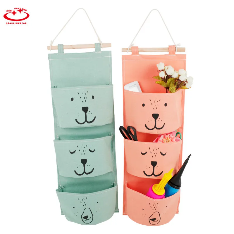 معرض ل 1 قطعة 3 جيوب الجدار شنقا أكياس التخزين المنظم الكتان خزانة الأطفال غرفة المنظم الحقيبة للعب الكتب خزانة حقيبة