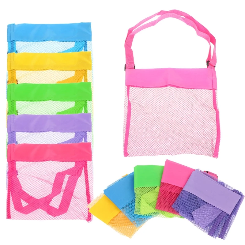 النايلون طوي الشاطئ شبكة حقيبة أطفال ألعاب أطفال تخزين أكياس قذيفة جمع المحمولة