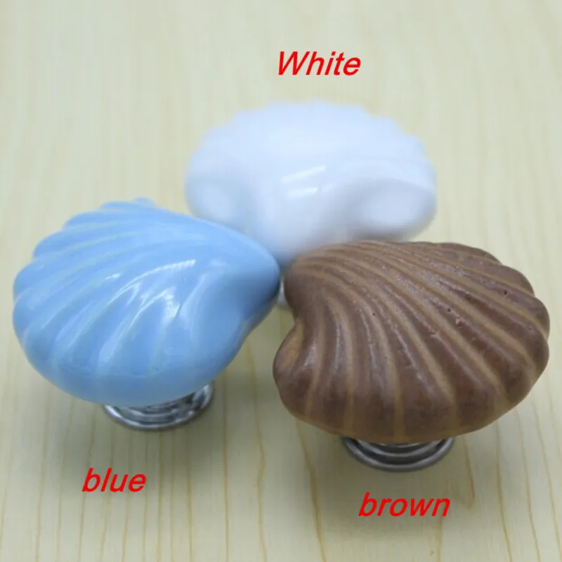 معرض من الأطفال غرفة القوقع شكل السيراميك درج خزانة خزانة تسحب المقابض ، الأزرق ، الأبيض ، مكتب الأثاث مقابض