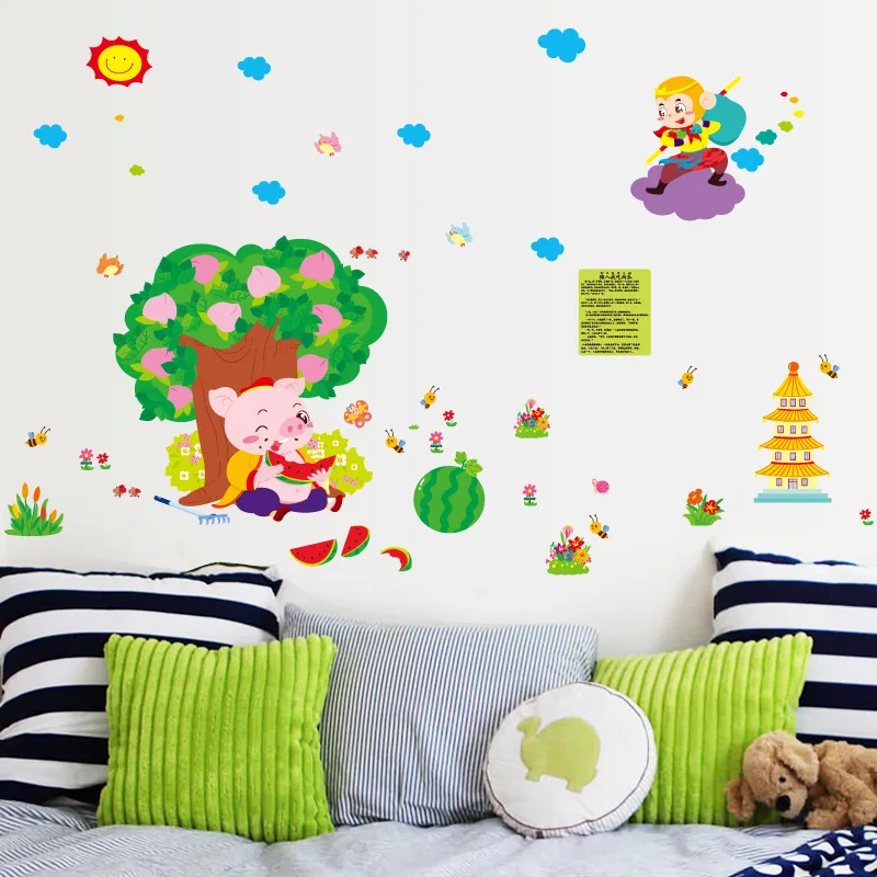 صور ل الكرتون ملصقات الحائط الطفل خرافة خرافة رحلة إلى الغرب الملك القرد pigsy أكل البطيخ الاطفال غرفة خزانة ديكور لصائق