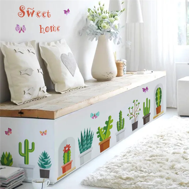 المنتجات ذات الصلة ل Children Wardrobes و 3d حية حديقة بوعاء النباتات ملصقات الحائط ديكور غرفة الحضانة النافذة خزانة المطبخ زهرة الأطفال صائق الحائط الفن