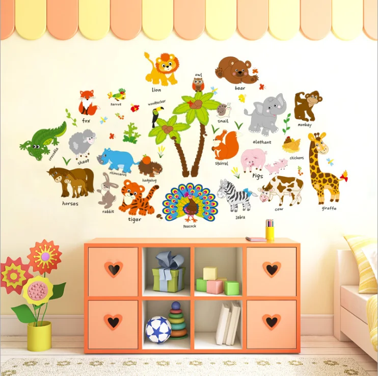شراءمعلومات اضافية الحيوانات الكرتون ملصقات جدار DIY الأطفال جدارية الشارات للأطفال غرف الطفل خزانة غرفة النوم باب الديكور