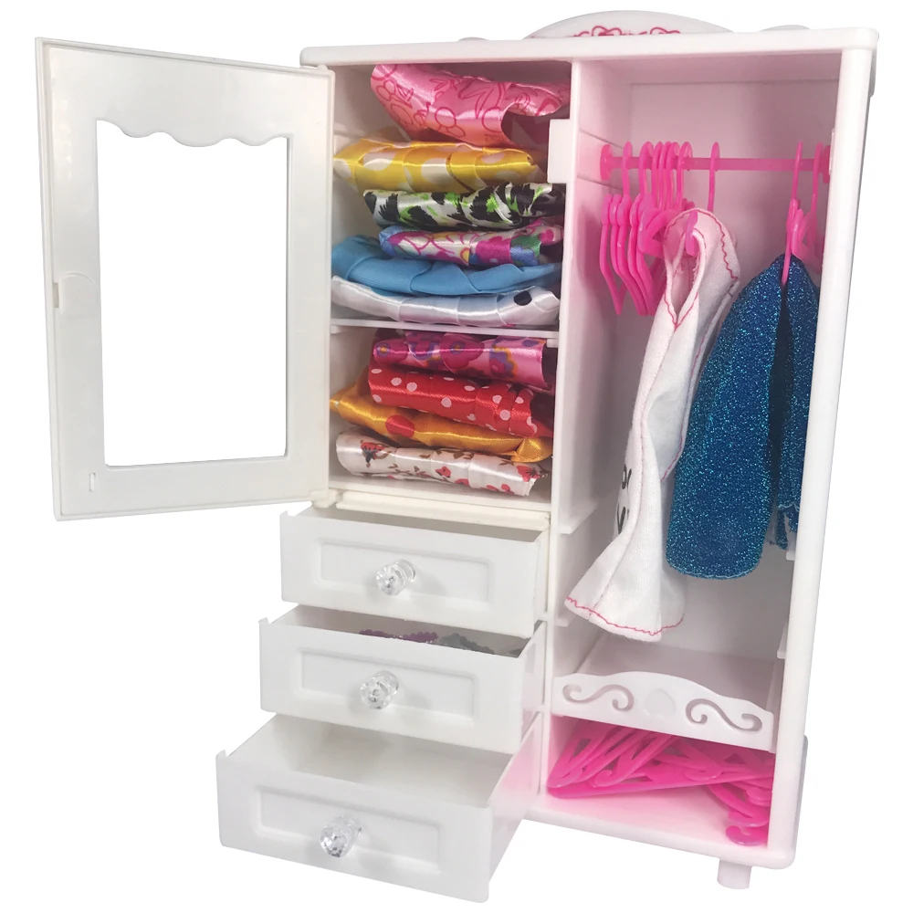 معرض ل NK مجموعة واحدة دمية اكسسوارات الأبيض خزانة خزانة ل باربي دمية الأميرة دريم هاوس الأثاث مصغرة أفضل هدية ل طفل