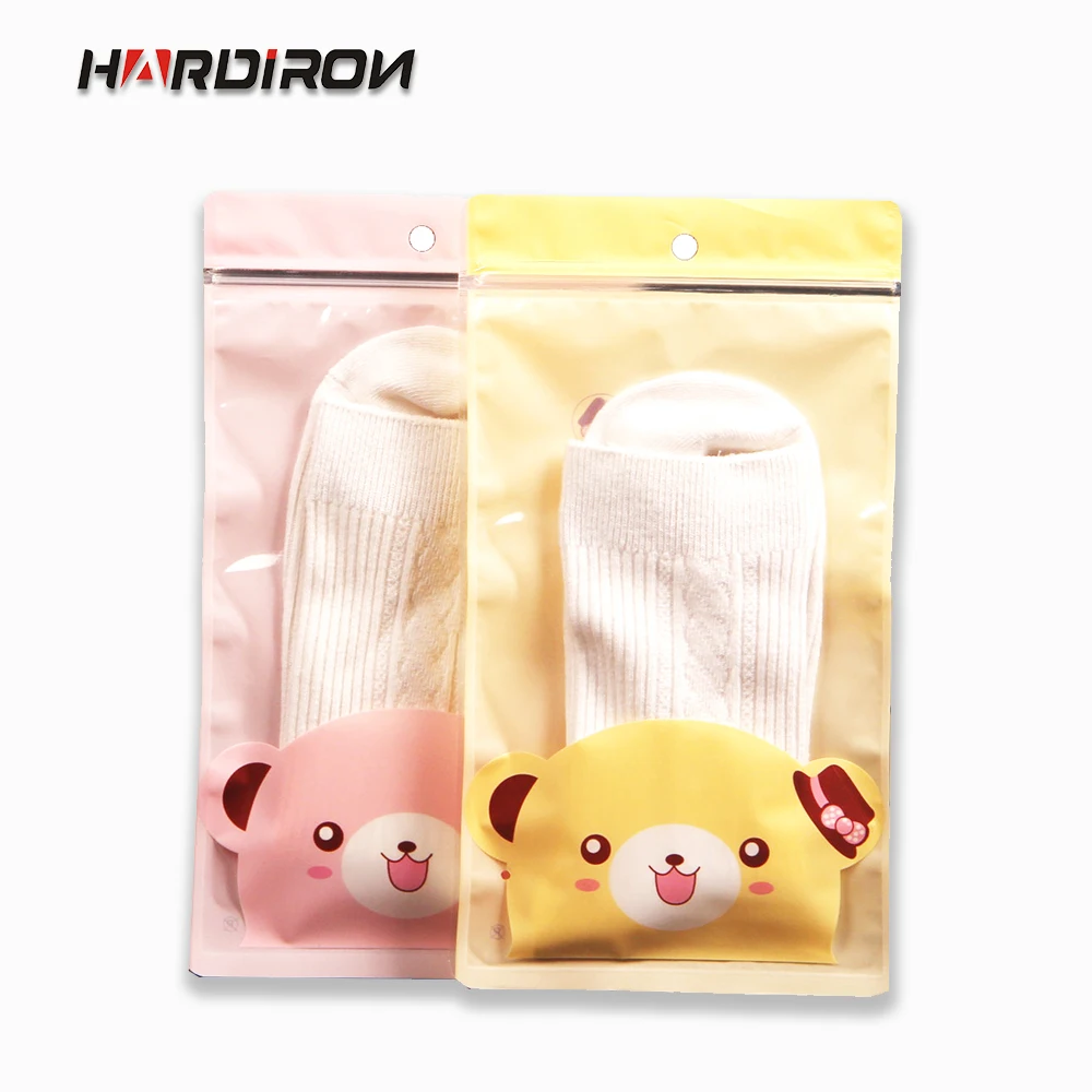 معرض ل HARDIRON الكرتون الطفل منشفة المطبوعة مع الدب نمط حقيبة الطفل الجوارب قناع عرض شفاف نافذة شنقا حفرة صمام حقيبة
