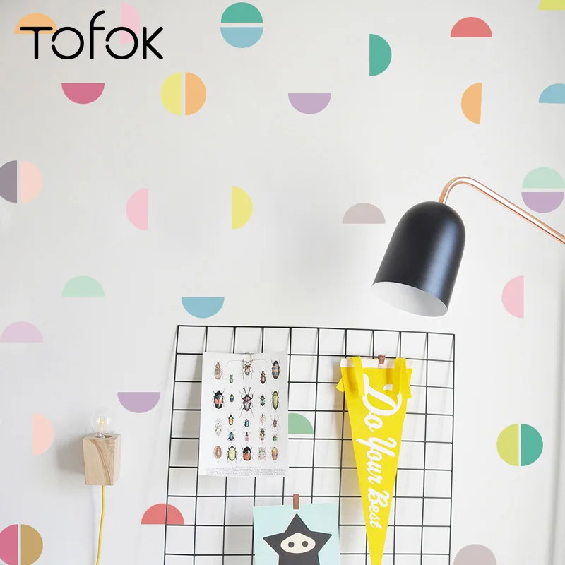 معرض من Tofok الملونة القوس جدار ملصقا Ins الشمال بسيطة نمط صائق الحائط الأطفال غرفة خزانة ديكور ملصقات جدار فتاة الحسنات